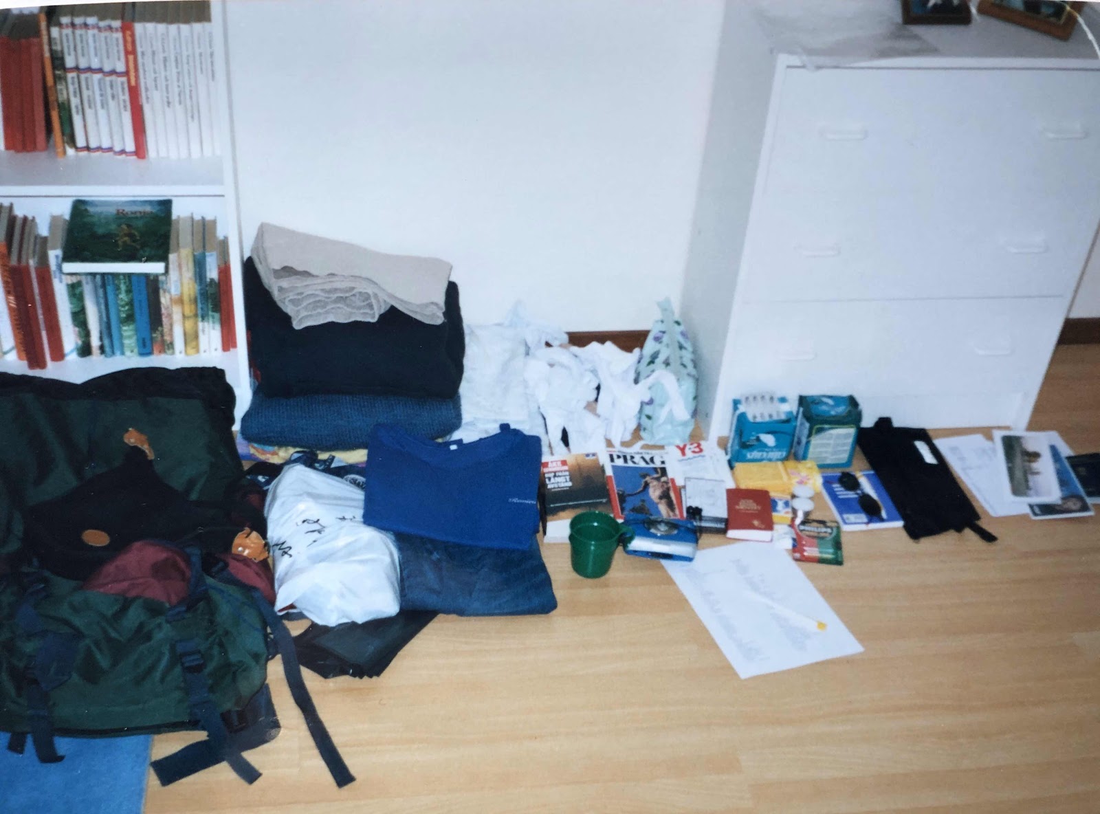 Jag börjar med en bild på min packning. Det krävs lite tankeverksamhet för att få med sig allt som behövs för två veckor i en ryggsäck. Men det gick!