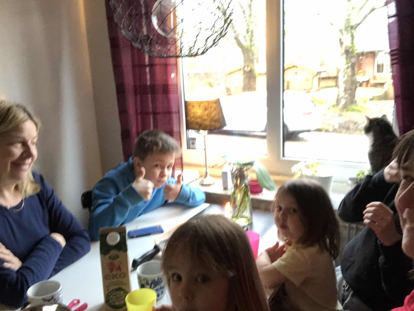 Barnen tittade på mello, som ju drog igång med första deltävlingen igår. Vi vuxna pratade och hade trevligt!