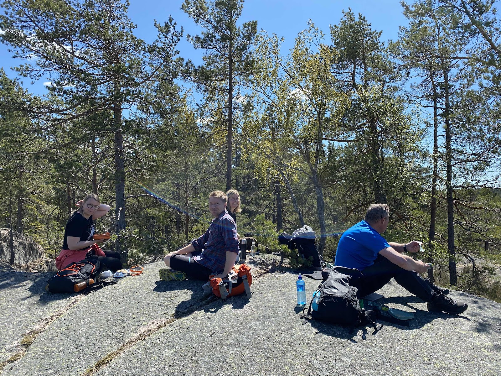 Vi gick vidare och hamnade på Trollkarlsberget. Den här etappen var mer krävande än tidigare etapper, det gick mycket uppför. Här har jag hittat en cache! Maria tog den här bilden.