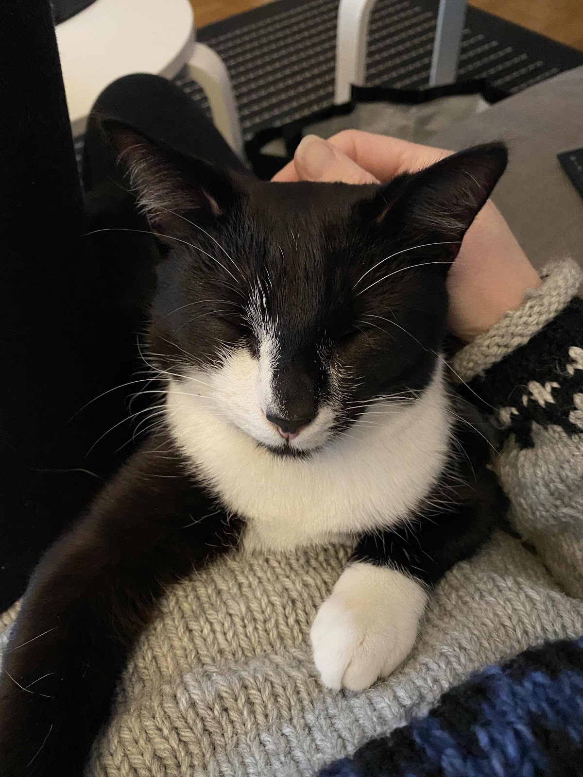 Så jag fortsätter sticka, se på serier, klappa katten osv.