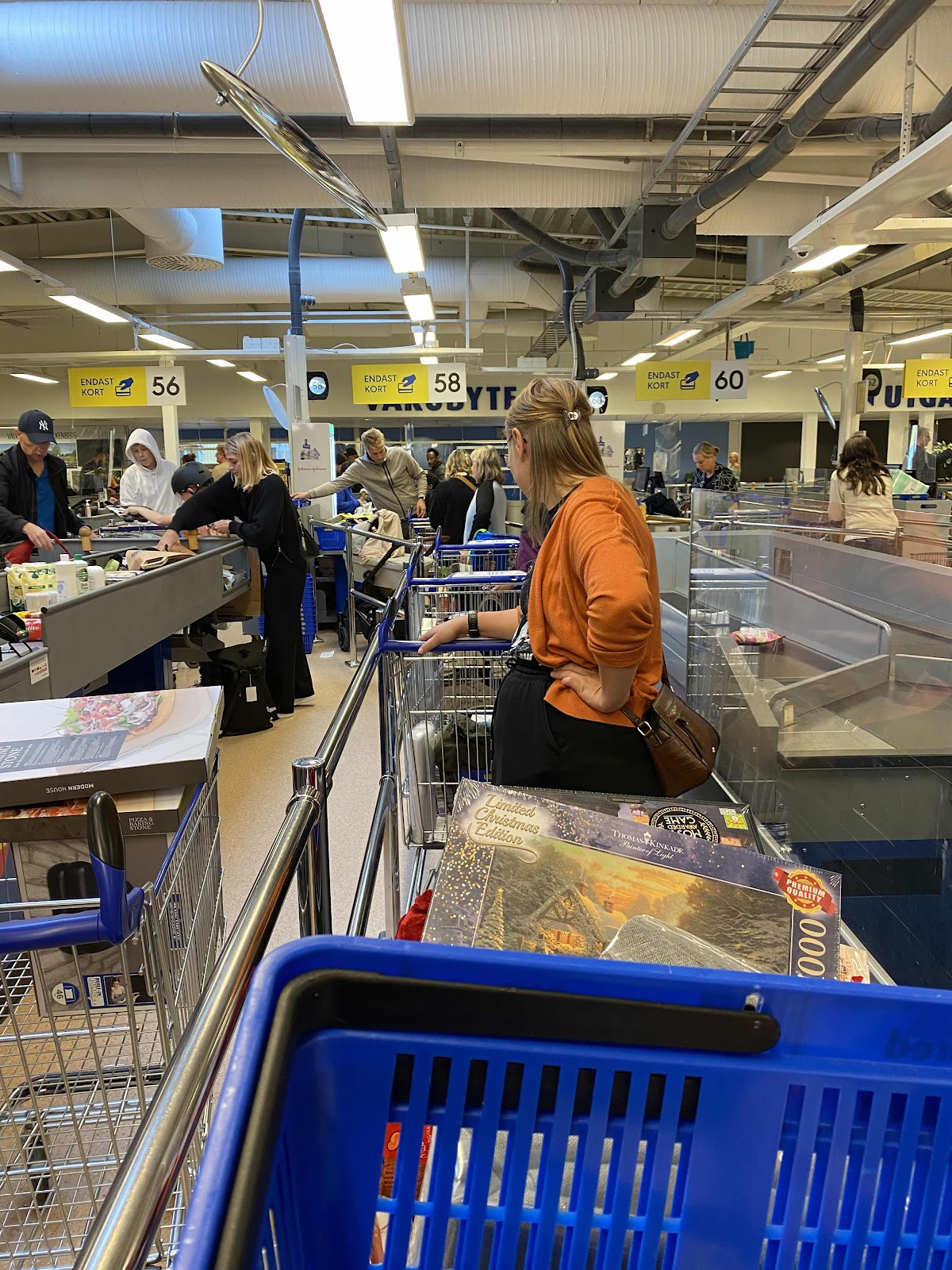 Efter ca 6,5 timmars shopping, lunch och fika var det dags att gå till kassorna med fulla vagnar.