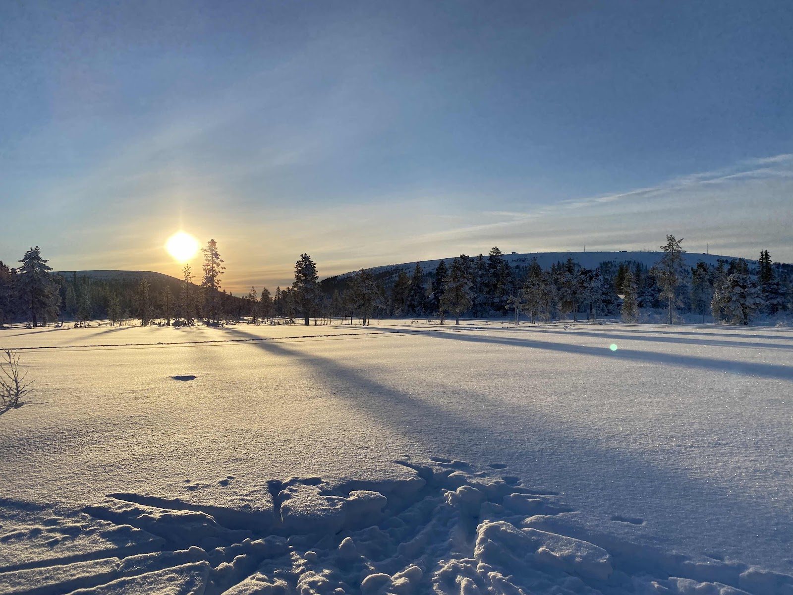 Maria, Mathilda och jag gav oss ut på längdskidorna. Det var så vackert! Tänk vad solen står lågt, det här är klockan 11 på förmiddagen.