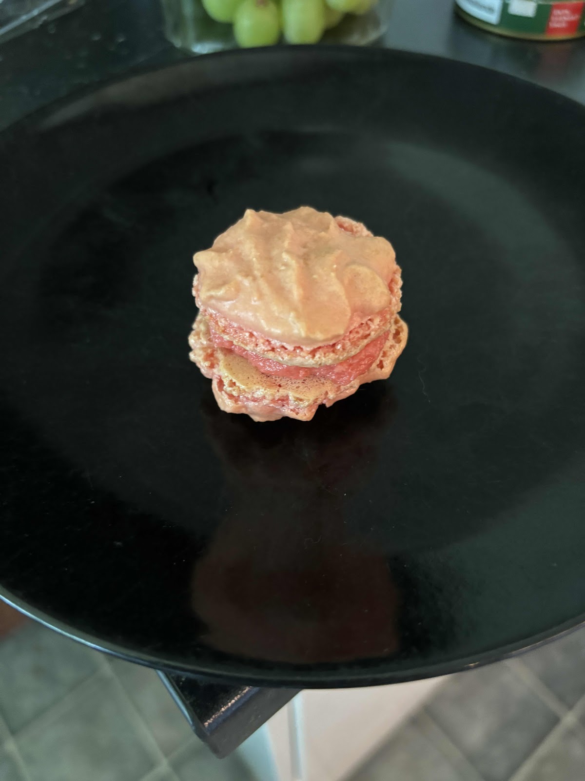 Igår förmiddag bakade jag macarons. De blev inte direkt vackra, men goda.