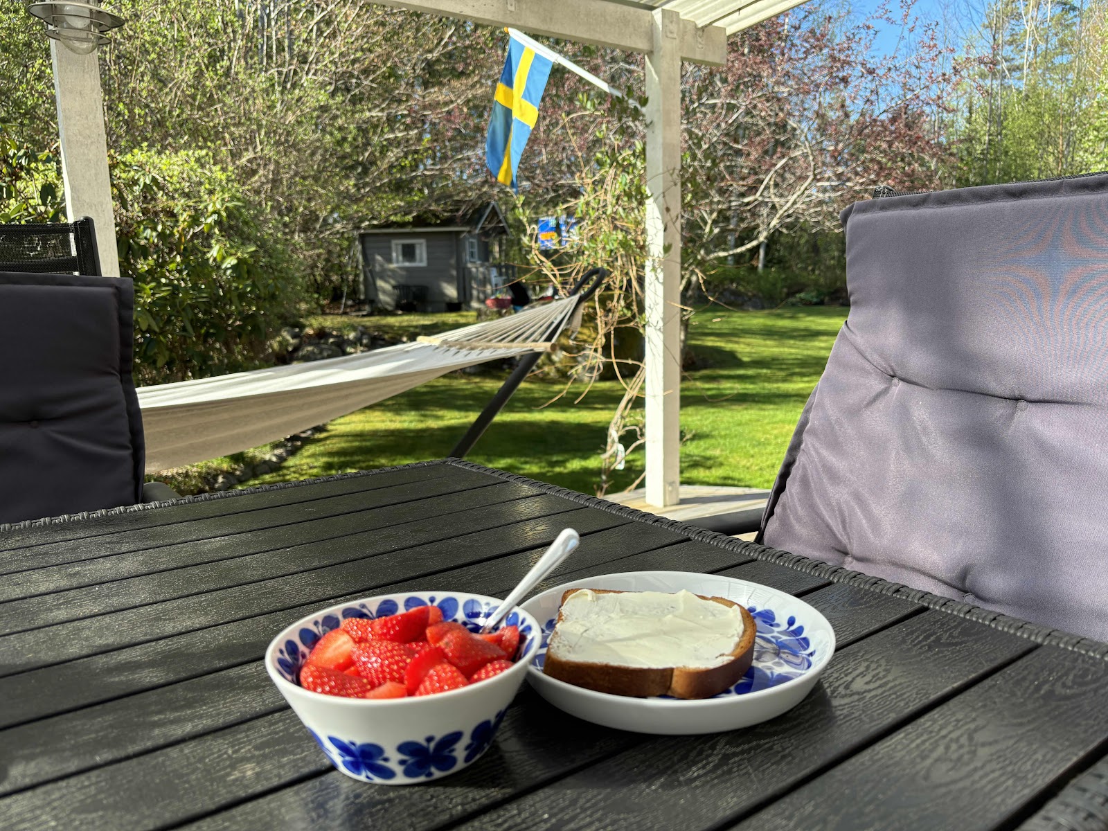 Det är härligt att kunna börja dagen med frukost på altanen.
