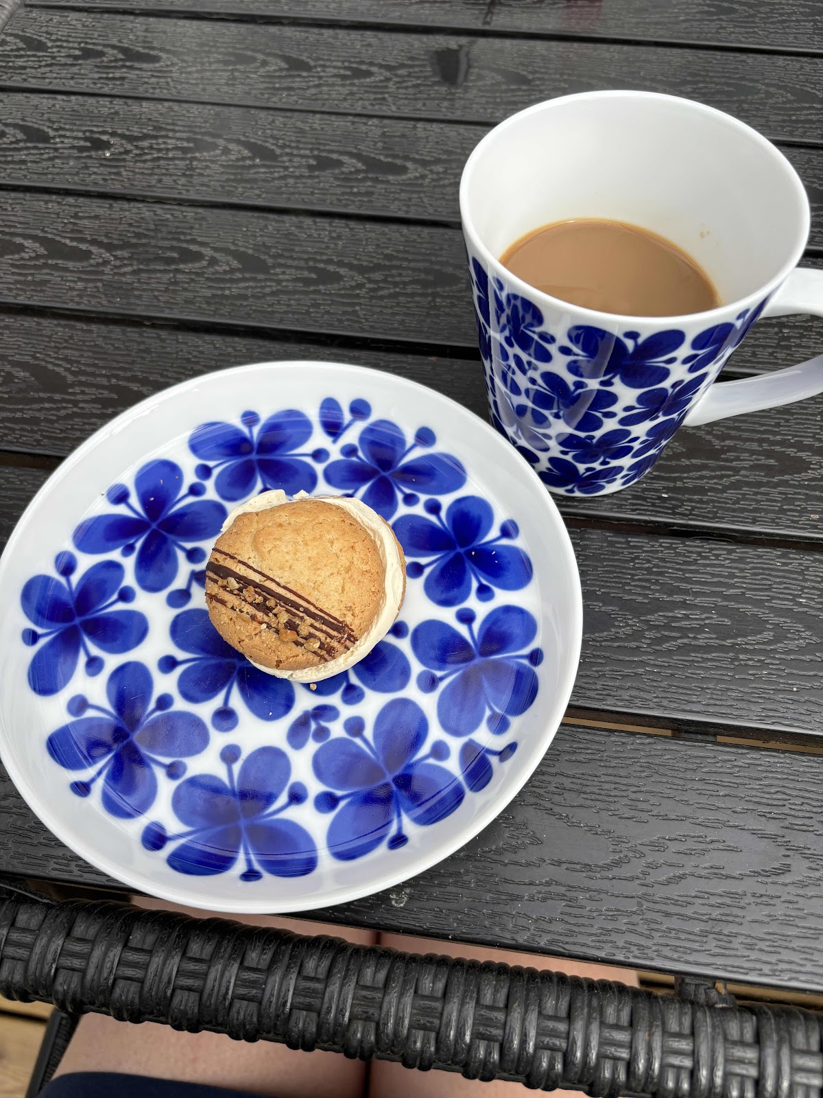 Söndagen blev lugn och skön hemma. Jag fikade hasselnötsbiskvi som jag köpt med mig från Öland.