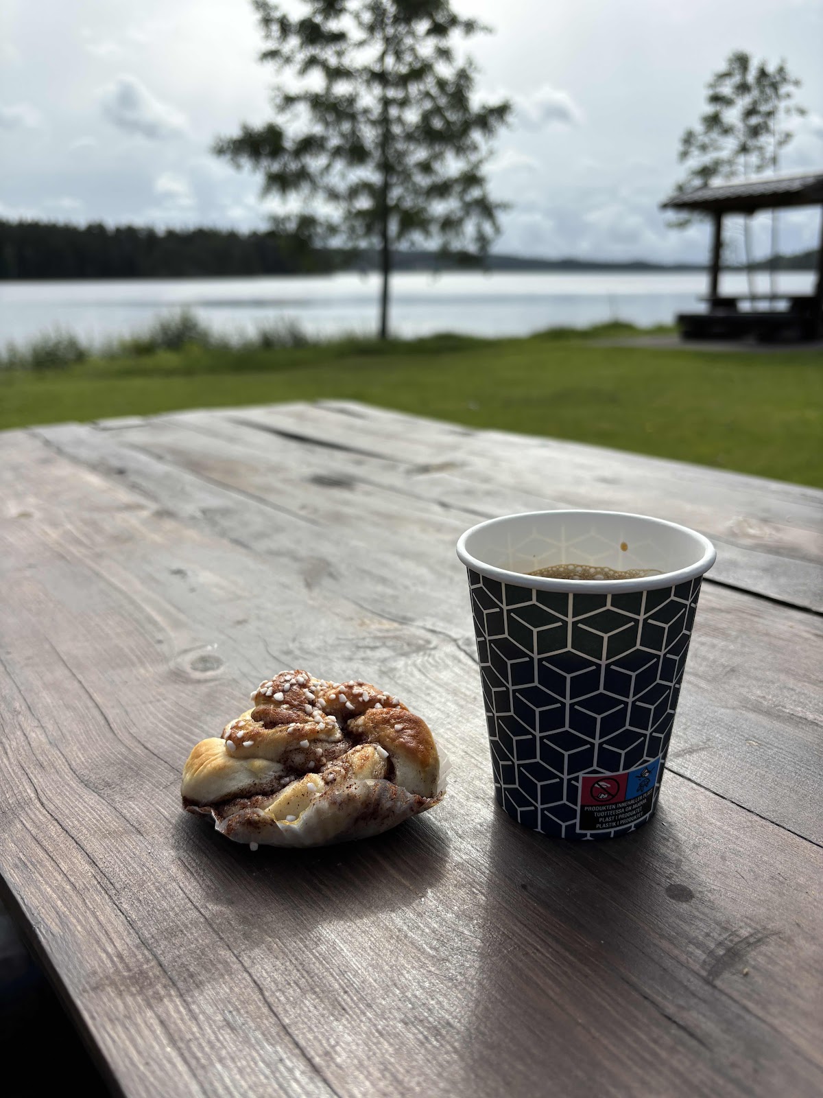 Vi stannade i Vansbro på vägen upp och köpte med bröd och fika.