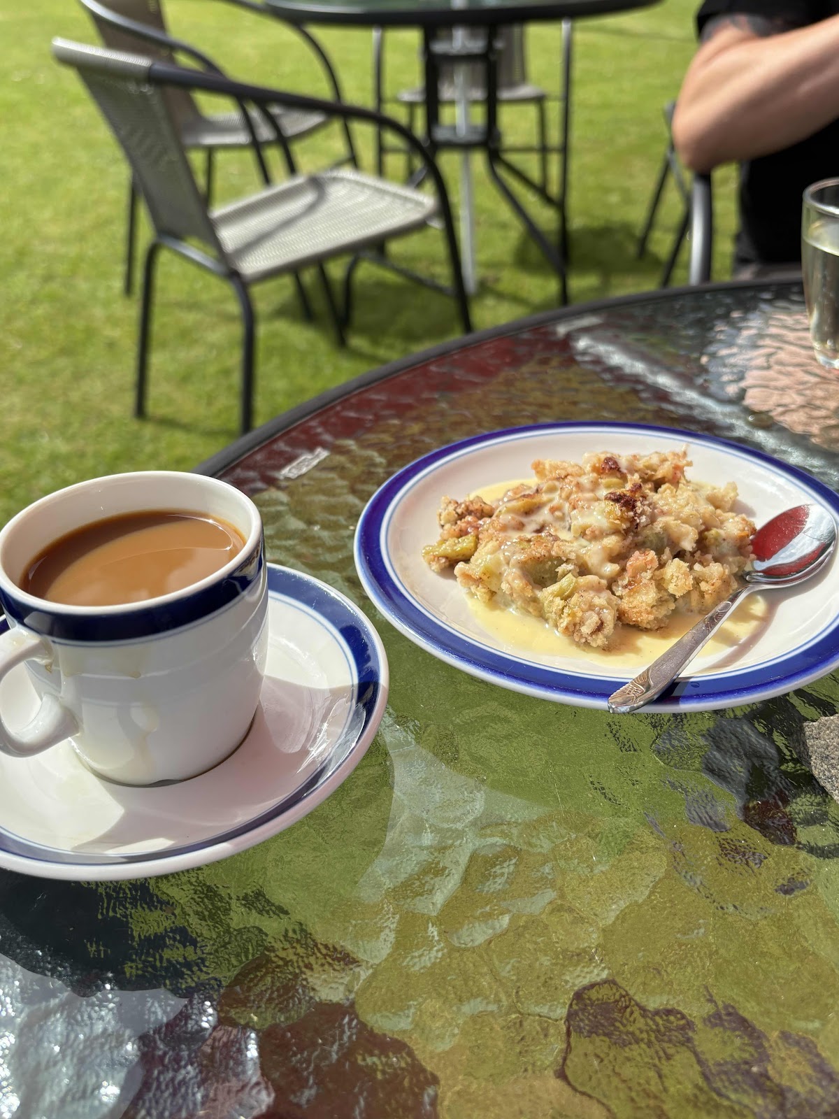 På torsdagen förmiddagsfikade syrran och jag på kyrkans tillfälliga sommarcafé där ett par av Oskars kompisar haft feriepraktik. God paj, bra service och priser och trevligt sällskap fick vi också.