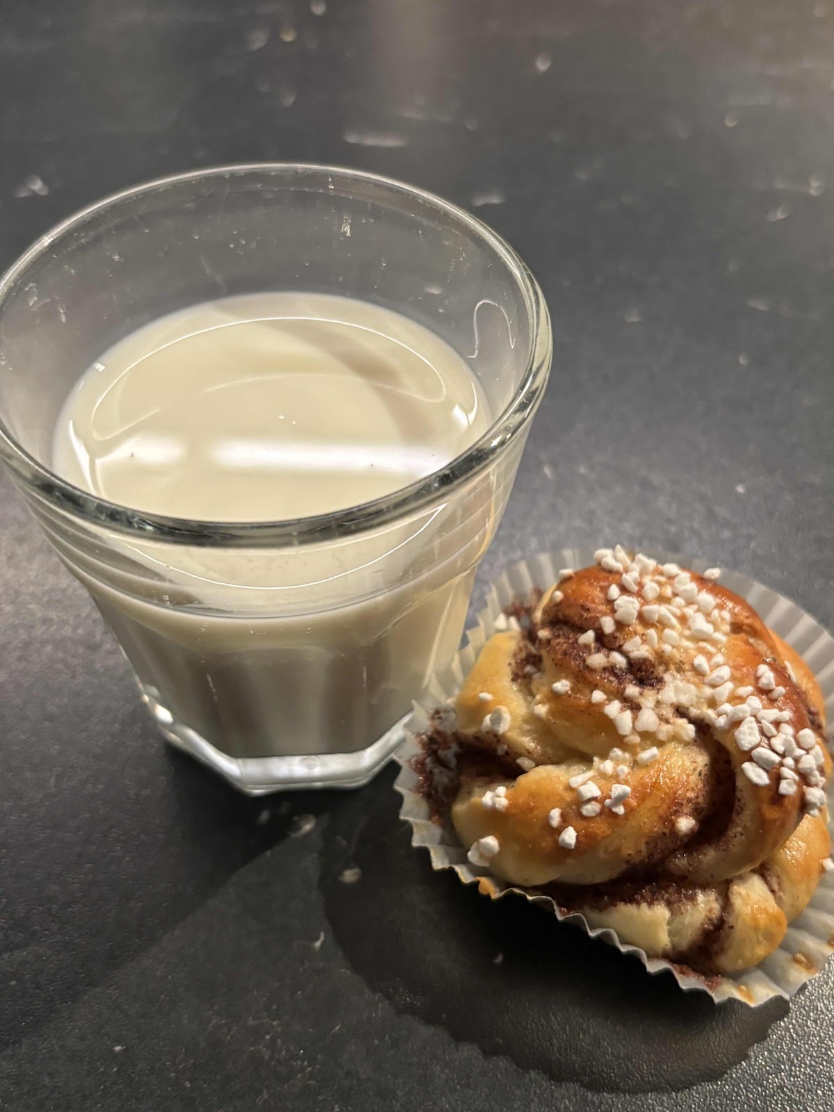 Jag bakade bullar på kvällen.