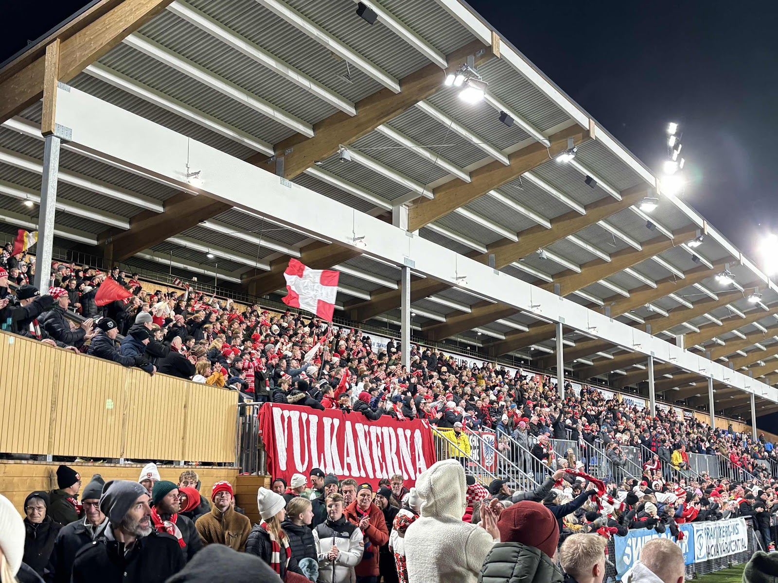 Oskar med kompisar stod i klacken, Håkan och jag satt en bit bort.