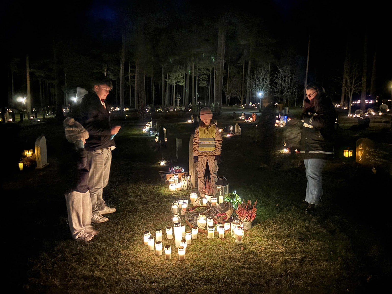 Snart anslöt ett gäng släktingar till och vi drack glögg innan vi gick mot kyrkogården.