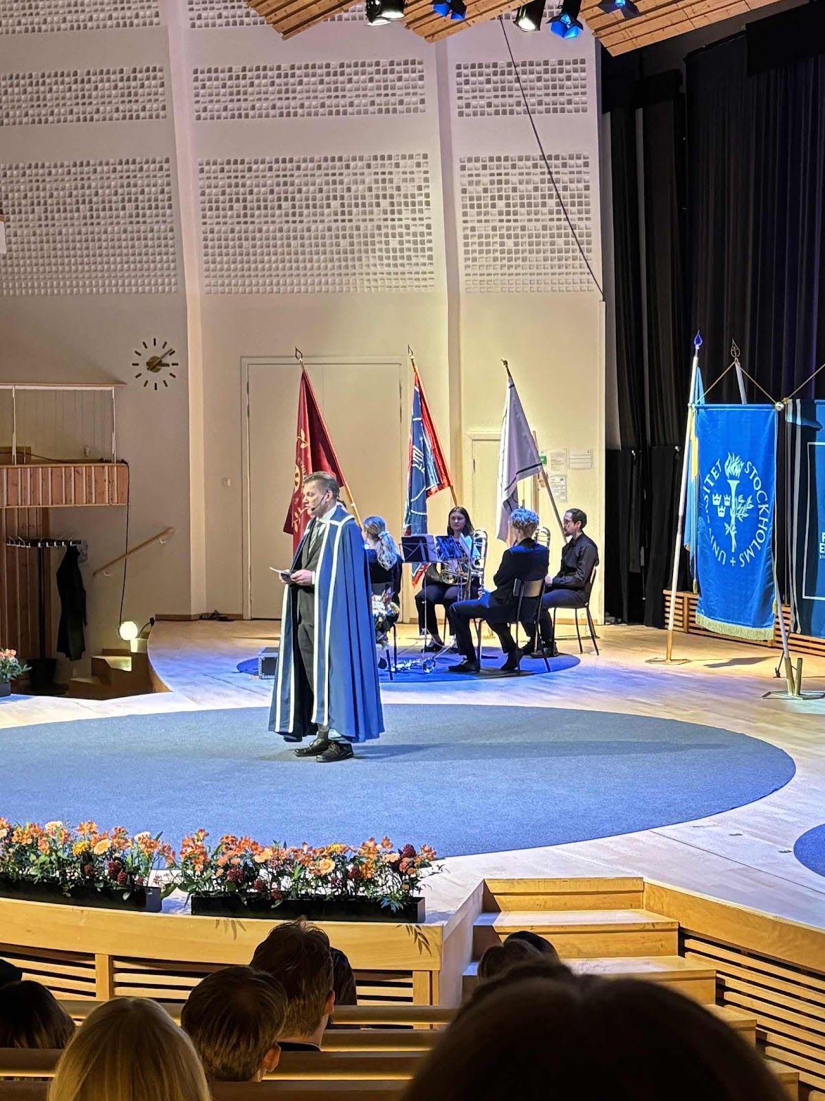 Prorektor, professor Clas Hättestrand höll tal. Jag vill också ha en mantel!