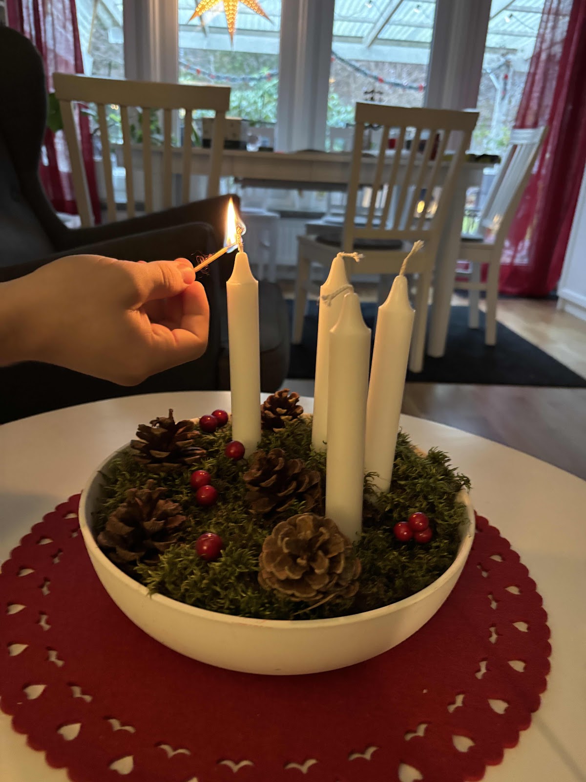 Vi tände första ljuset när vi kom hem från Kiel. Julkalendern såg vi tillsammans.