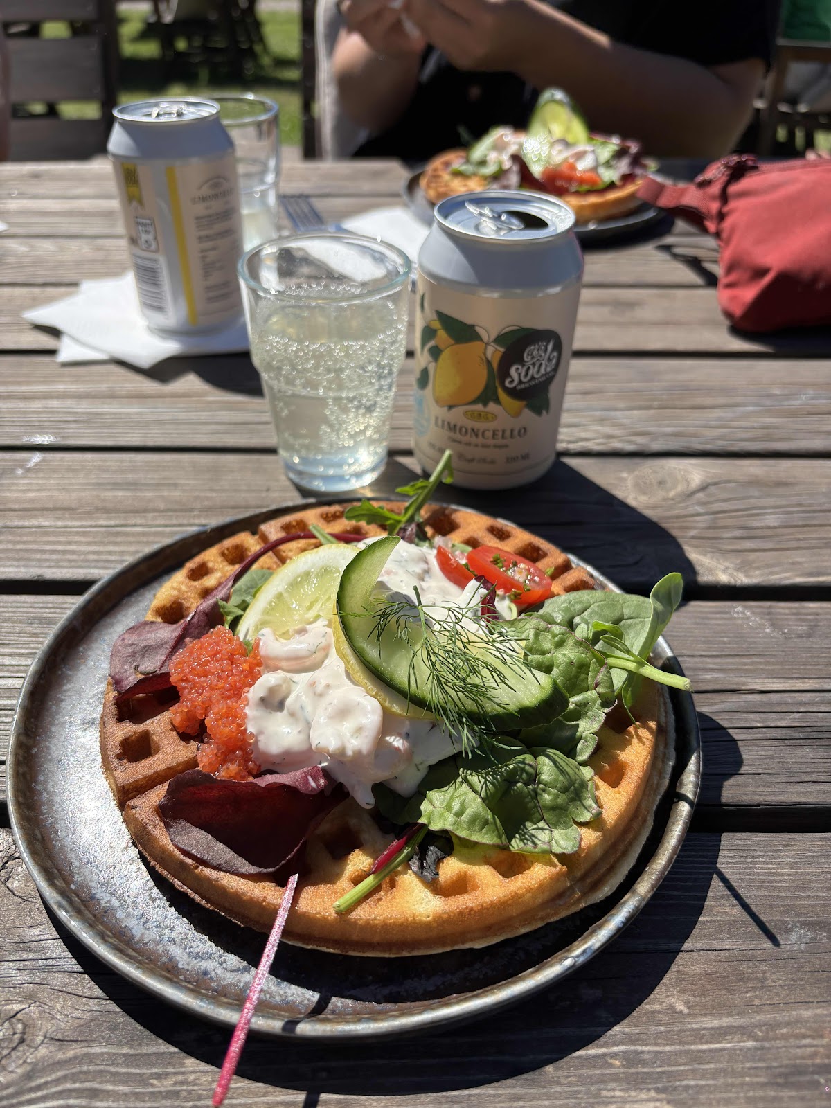 Vi delade på en våffla med sylt och grädde till efterrätt.