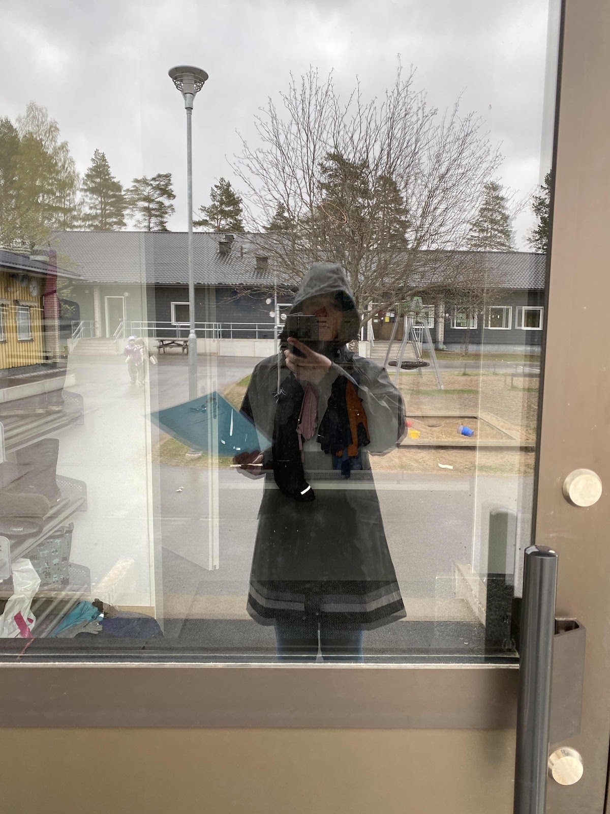 Vädret har inte varit något vidare i veckan, kallt och regnigt. Men då fick jag ju orsak att prova min nya regnkappa! Här är jag i måndags, på jobbet.
