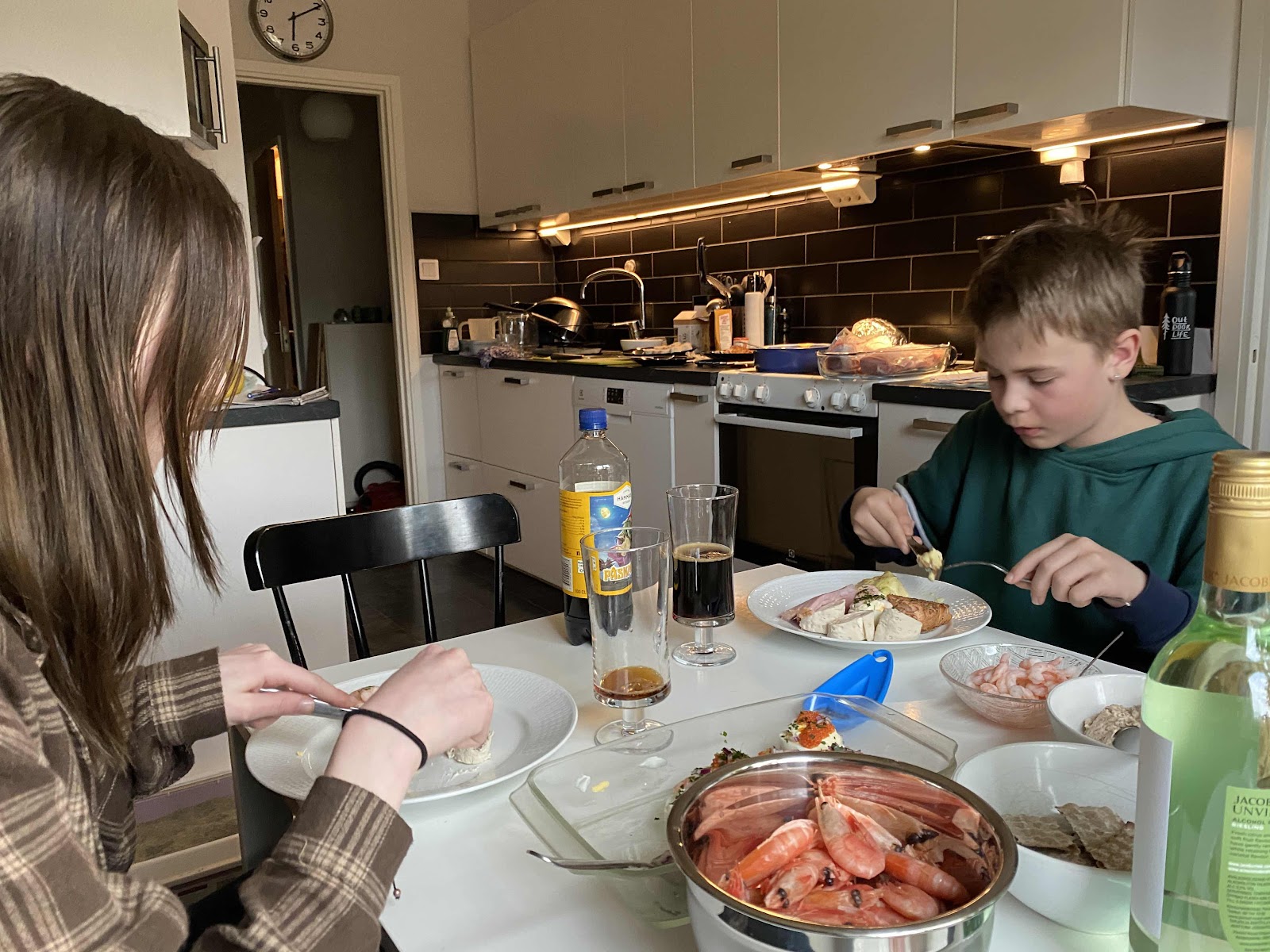 På kvällen åt vi påskmat, en massa gott! Mest fiskrätter. Sillen kom inte med på bilden!