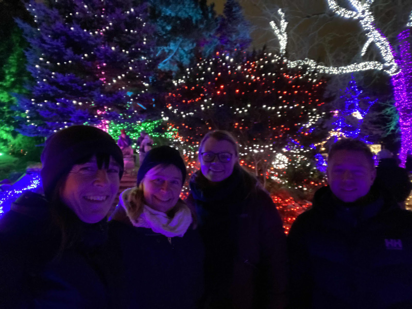 En del av stadsparken är upplyst i en massa färger. Häftigt! Inte så vackert, men roligt att promenera igenom.