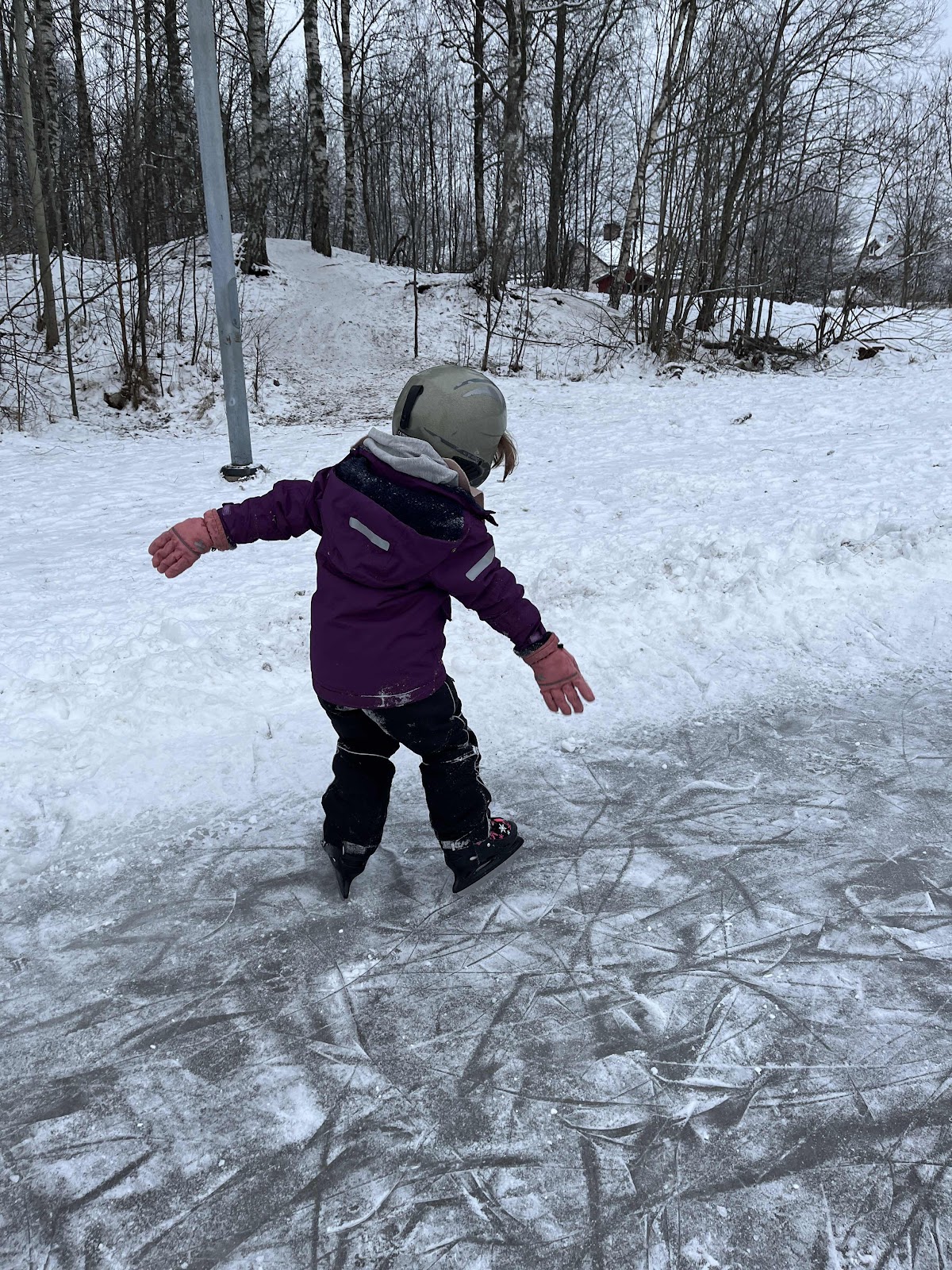Roxanna avslutade med att åka ett helt varv runt isen (med många vurpor). Vilken utveckling på en timme!
