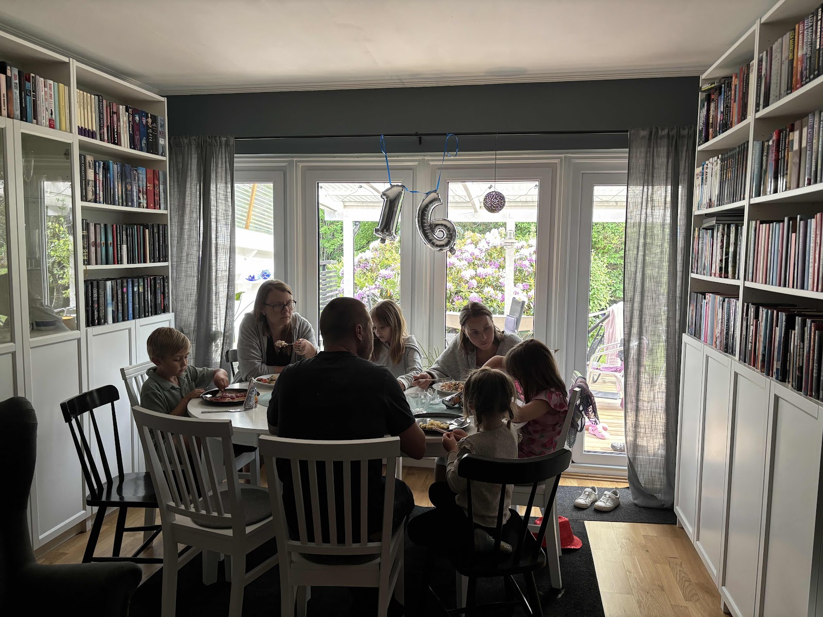 Oskars syskon och syskonbarn stannade på kvällsmat, snickarkorvssallad!