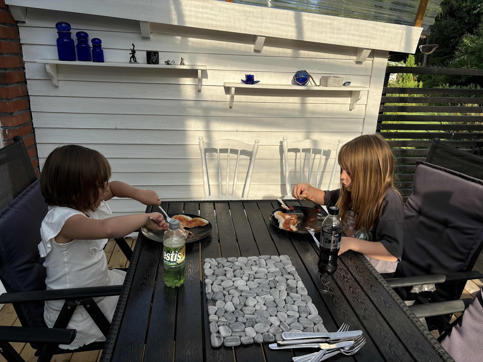 På kvällen gjorde Oskar pizza. Han blev inte nöjd med degen, men pizzorna blev goda.