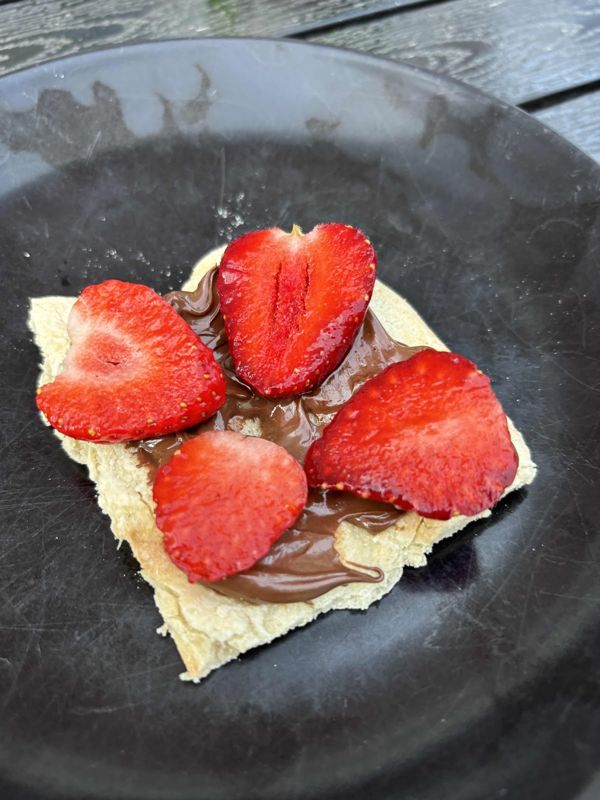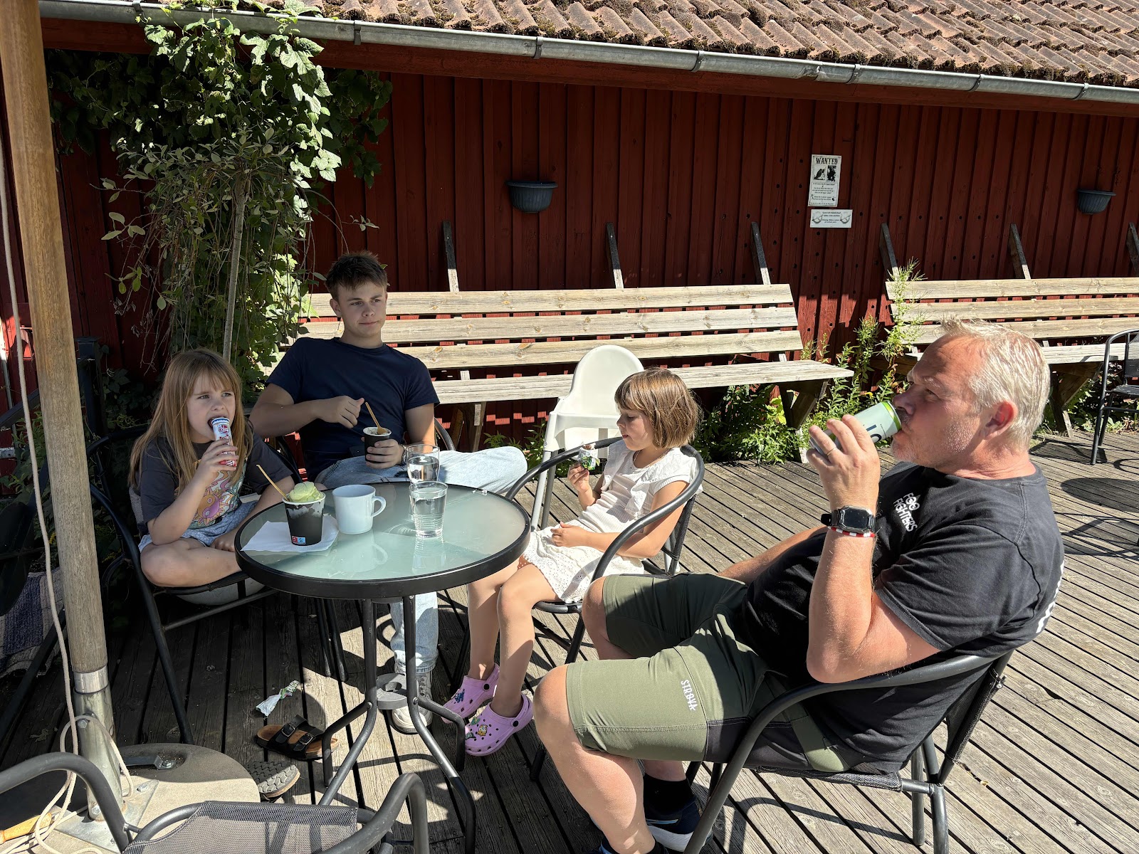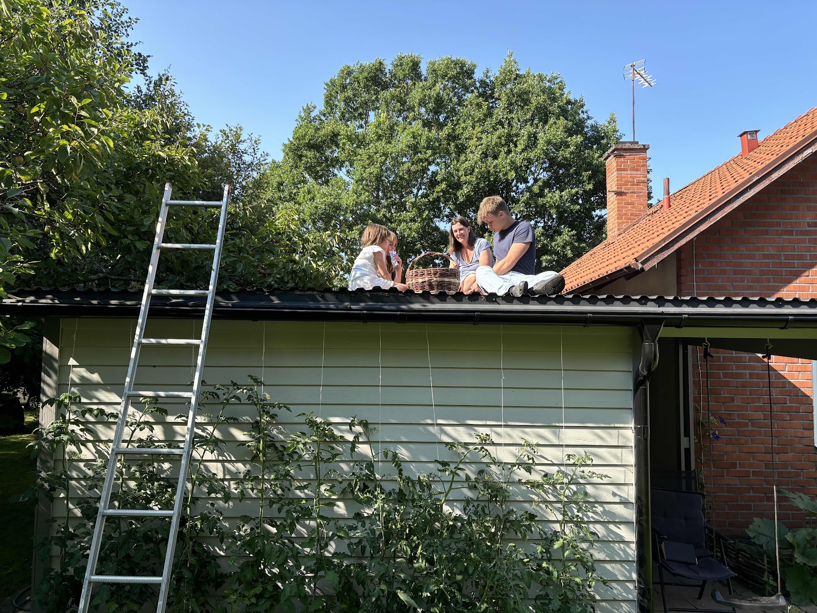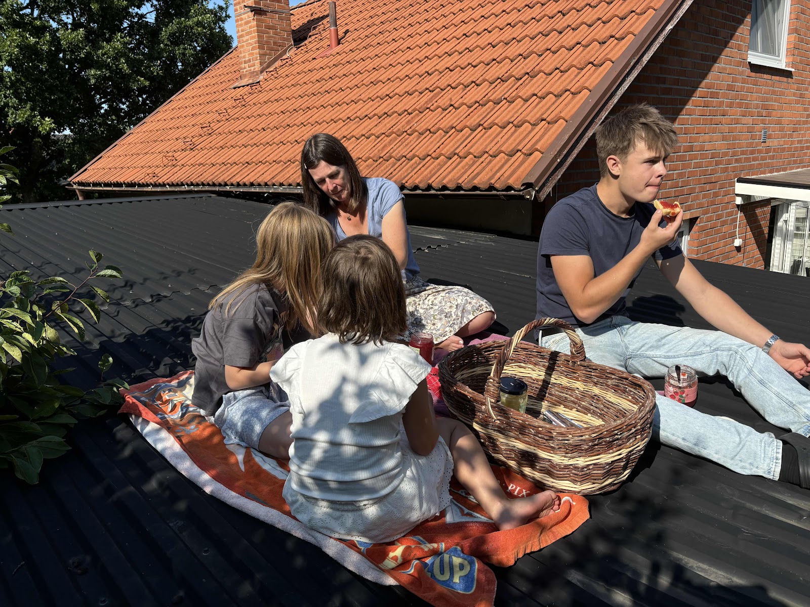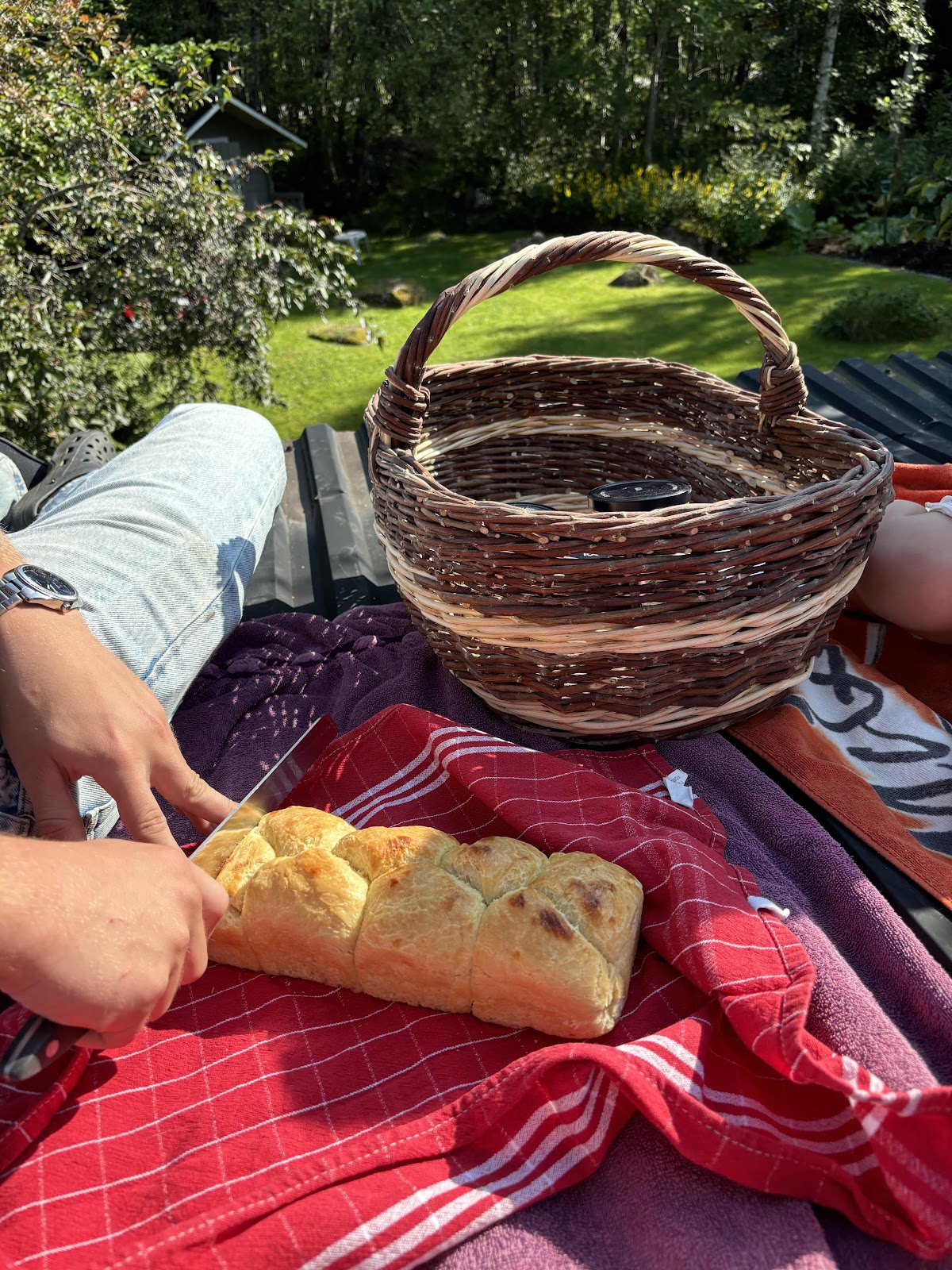 Vi ordnade picknick på garagetaket och provsmakade briochen.