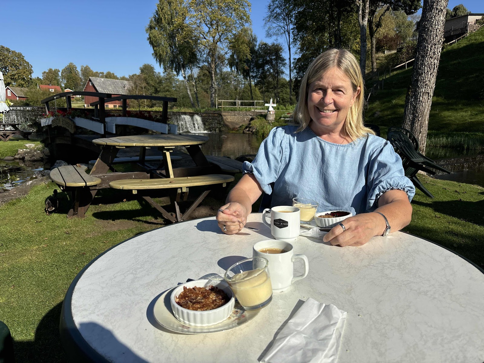 Efter ytterligare lite shopping, gick vi till kassan. Sen blev det tidigt eftermiddagsfika i solskenet.