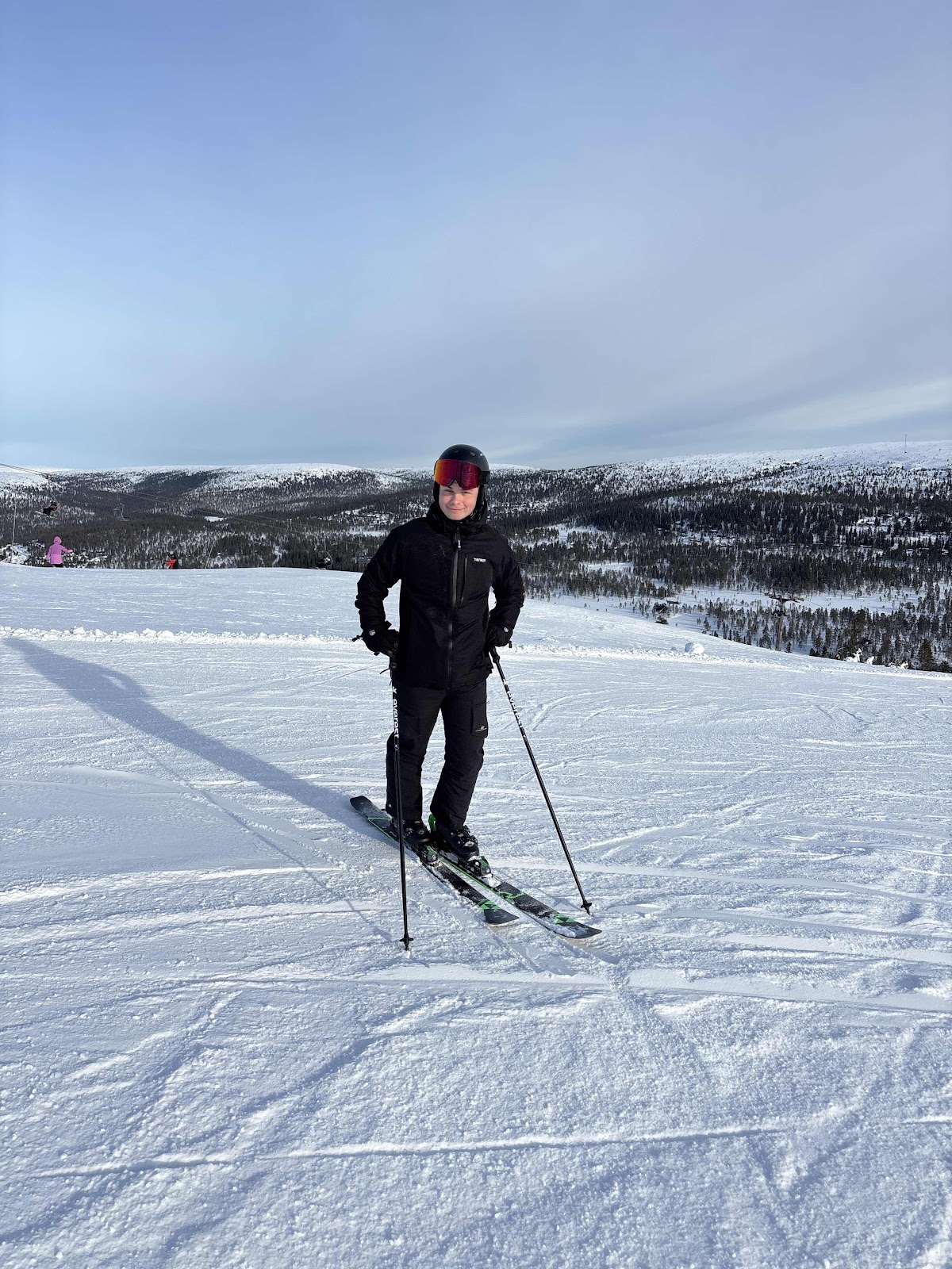 Oskar drog iväg och åkte själv. Rätt snart åkte han över till Hundfjället. Jag åkte i solbackarna.