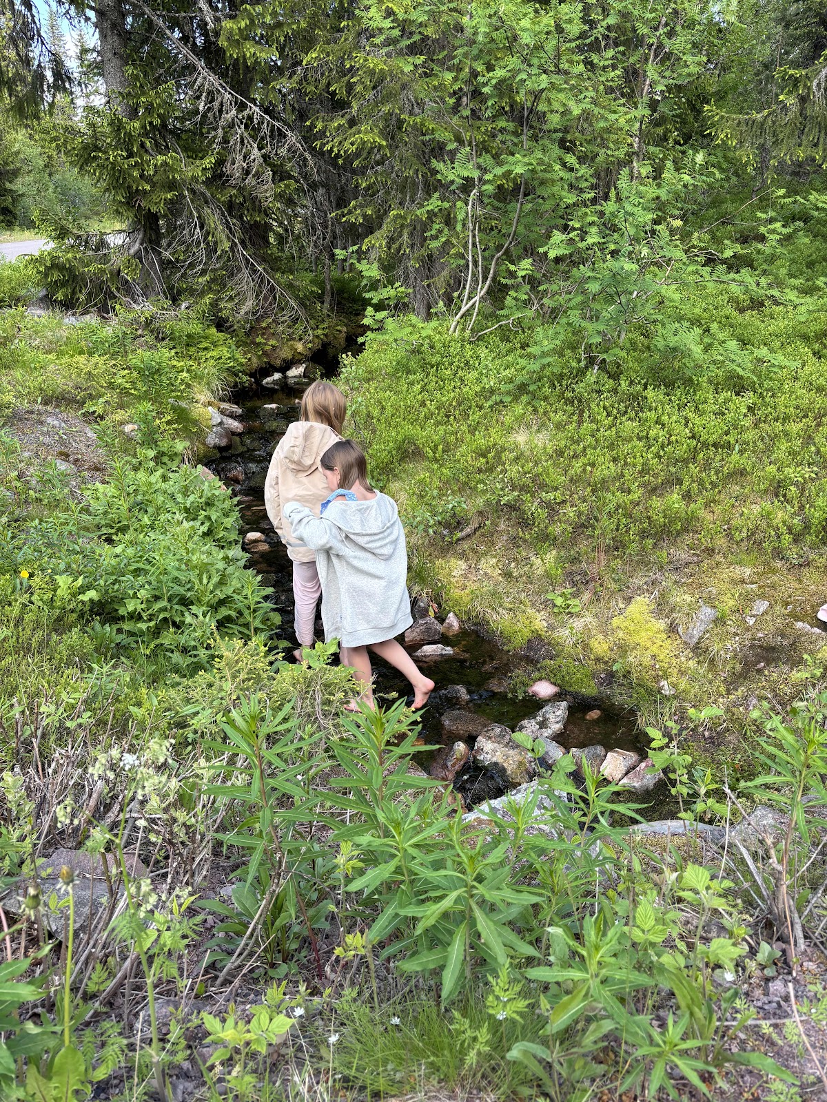 Vi doppade fötterna i bäcken. Det var iskallt!