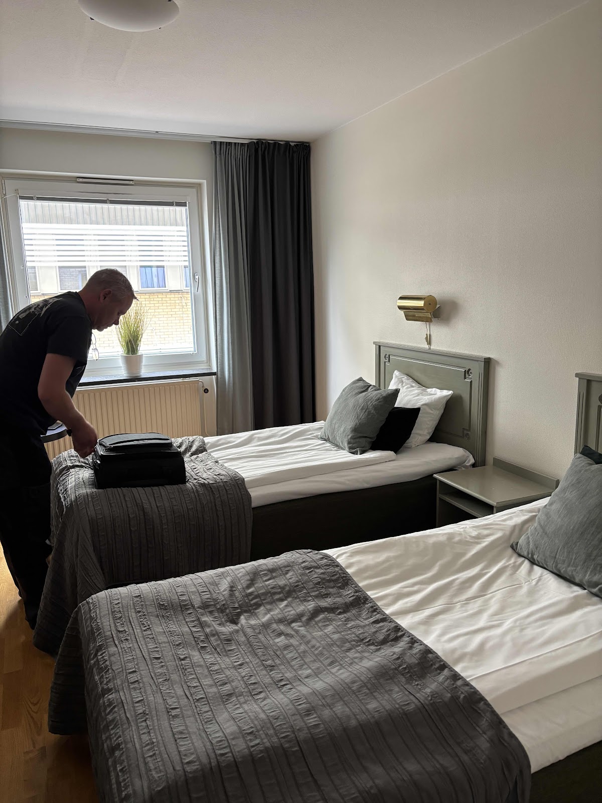 Vi checkade in på hotellet, inte lika fint som det i Norrtälje, men fräscht och centralt.