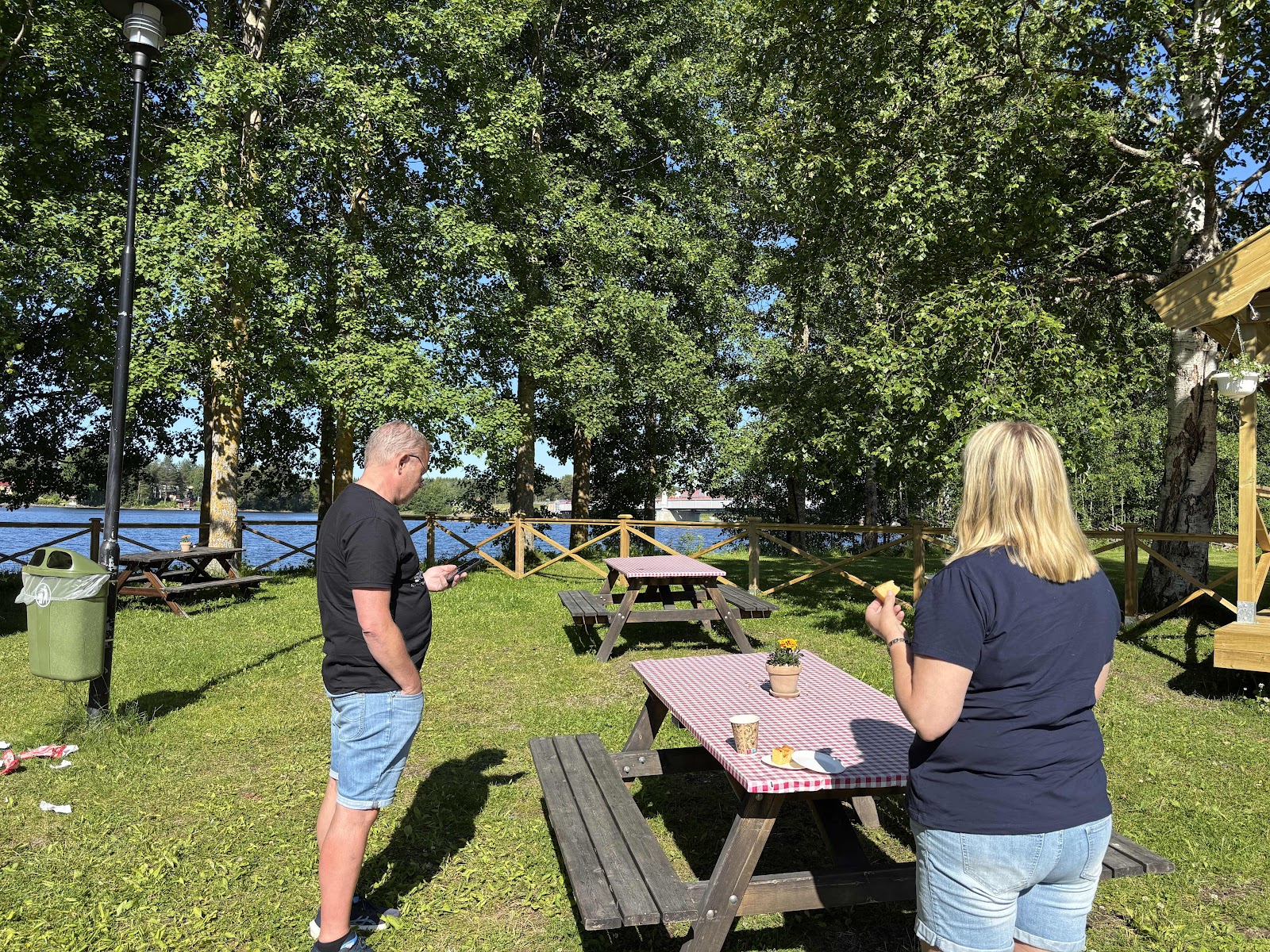 Vi fikade våfflor med hjortronsylt på Café nya Berglunds i Gäddede. Gott!